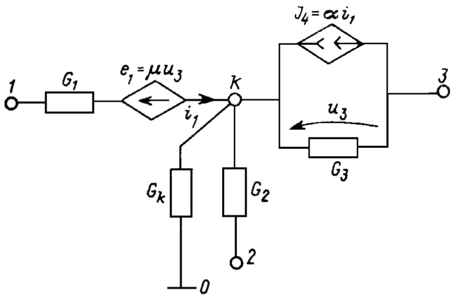 В итоге матрица узловых уравнений активной цепи становится несимметричной — ее внедиагональные элементы с одинаковыми индексами не равны друг другу. Это свойство характерно для узловых уравнений активных цепей.