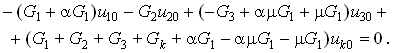 Подставляя эти величины в узловое уравнение и группируя члены, приведем последнее к виду