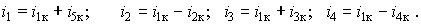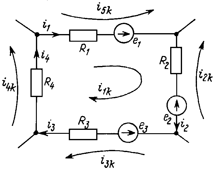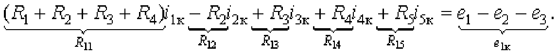 Принимая в качестве положительных направлений токов в ветвях указанные на рис. 4.1, запишем уравнение второго закона КирхгофаСчитая, что в рассматриваемом и смежных с ним контурах циркулируют контурные токи iк, выразим через них токи в ветвях