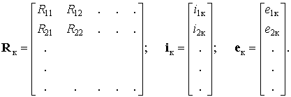 где Rк матрица контурных сопротивлений; iк вектор-столбец контурных токов; eк вектор-столбец контурных ЭДС;
