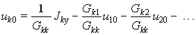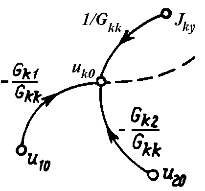Для построения сигнального графа, узлам которого соответствуют узловые напряжения, разрешают узловое уравнение k-го узла цепи