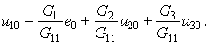 К узлу u10 сигнального графа подходят три ветви из узлов e0, u20 и u30, непосредственно с ним связанных.