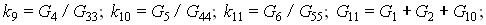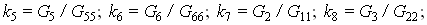 Запишем в числителе формулы Мейсона передачу указанного пути. Ему соответствует Dk = 1: он соприкасается (имеет общие узлы) со всеми перечисленными контурами. В знаменателе D со знаком “минус” учитываем все пять контуров, затем со знаком “плюс” берем произведение несоприкасающихся пар (их всего шесть). Наконец, опять со знаком “минус” берем произведение передач несоприкасающейся тройки контуров 1, 3 и 5. В результате получим