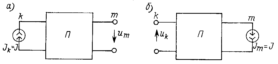 Отношение im/Jk — коэффициент передачи тока от ветви k к m — равно коэффициенту передачи напряжения uk/em в противоположном направлении — от ветви m к ветви k.