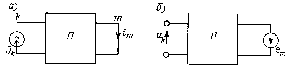 3. Еще одно проявление принципа взаимности можно обнаружить при сравнении тока im, вызванного источником тока Jk, и напряжения uk, обусловленного действием ЭДС em (рис. 6.5 а,б).