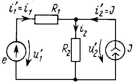 могут иметь любой знак, что определяется соотношением параметров элементов цепи: при e < JR2 источник ЭДС потребляет энергию, отдаваемую источником тока, при e < – JR1 в режиме потребления энергии работает источник тока. Независимо от этих соотношений суммарная мощность, потребляемая обоими резистивными элементами