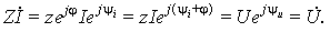 При перемножении комплексных сопротивления и тока согласно правилам комплексной алгебры получим