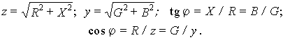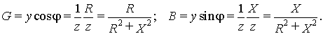 Имеем следующие соотношения между составляющими комплексных сопротивлений и проводимостей:
