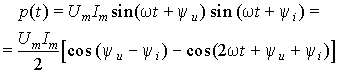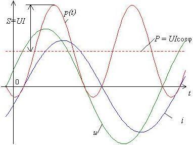 Изменение мгновенной мощности p(t), потребляемой произвольным двухполюсником, иллюстрируется графиком (сплошная красная линия на рис. 7.7).
