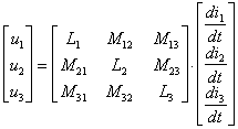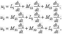 Соотношения между токами и напряжениями для двух обмоток очевидным образом обобщаются на системы с произвольным числом индуктивно связанных обмоток. Так, для трех обмоток имеем:
