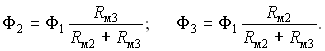 Магнитный поток в первом стержне равен Φ1 = iw/RмΣ. Потоки в параллельных стержнях распределяются обратно пропорционально их магнитным сопротивлениям: