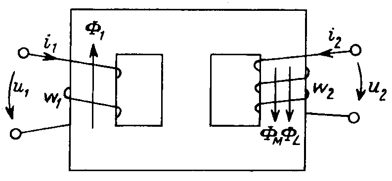 В магнитной цепи рис. 9.2 эти потоки складываются, и для суммарных ЭДС, индуктированных в обеих обмотках, имеем