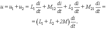 Величина Lэ = (L1 + L2 + 2M) в этом случае представляет собой эквивалентную индуктивность.