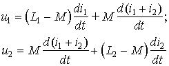 и эквивалентная индуктивность равна Lэ = (L1 + L2 – 2M).