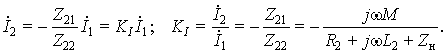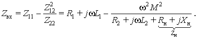 где Z11 = R1 + jwL1; Z22 = R2 + jwL2 + Zн; Z12 = Z21 = jwM; Zн = Rн + jwXн — комплексное сопротивление нагрузки трансформатора.