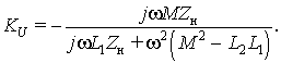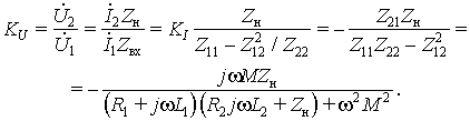 Выражение в скобках представляет собой входное сопротивление трансформатора Zвх. Передаточная функция по напряжению трансформатора KU определяется как отношение