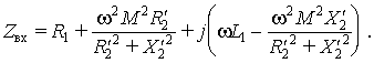 Принимая обозначения R2' = R2 + Rн и X2' = wL2 + Xн для суммарных параметров вторичного контура и разделяя вещественную и мнимую части в выражении для Zвх, приведем его к виду