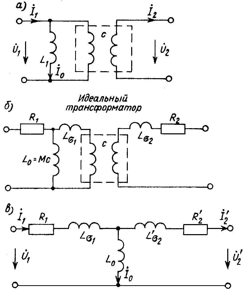 9.4. ТРАНСФОРМАТОРЫ С ФЕРРОМАГНИТНЫМ СЕРДЕЧНИКОМ. СХЕМЫ ЗАМЕЩЕНИЯ ТРАНСФОРМАТОРОВ