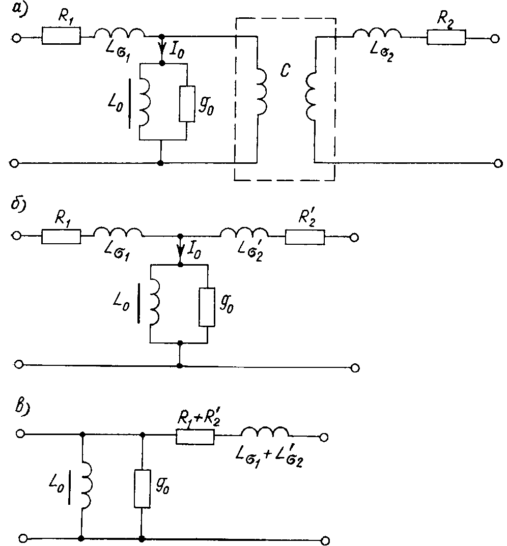Это приводит к упрощенной схеме замещения приведенного трансформатора (рис. 9.11, в).
