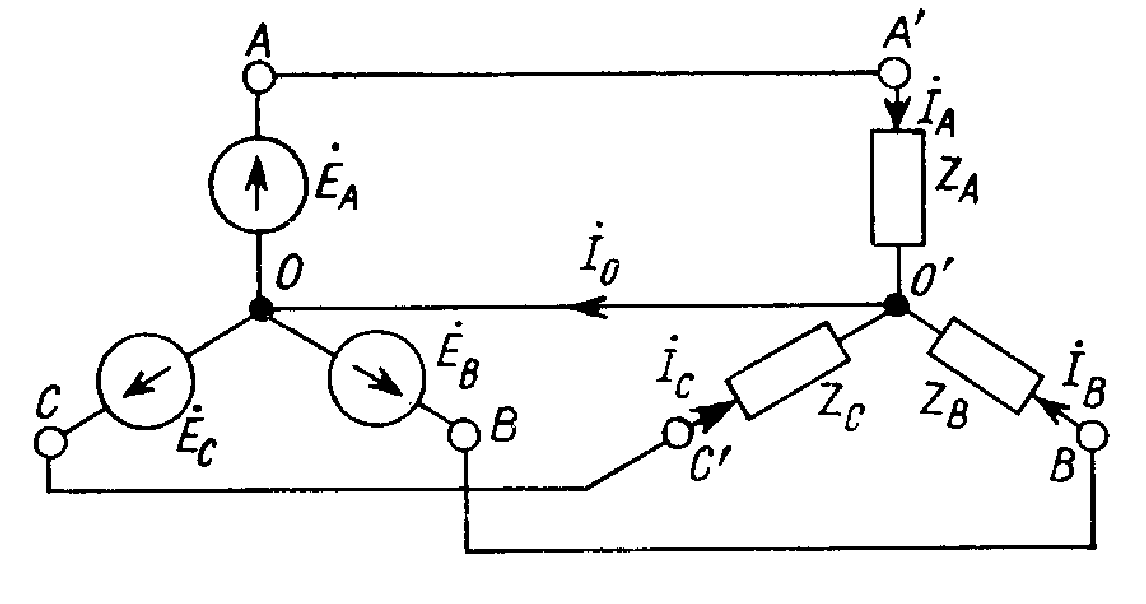 , а ток в нейтральном проводе 00' İ0 = İA + İB + İC.