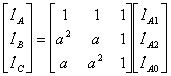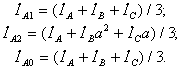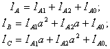 из которой симметричные составляющие фазы A (İA1, İA2 и İA0) можно легко выразить через суммарные токи исходной несимметричной системы: