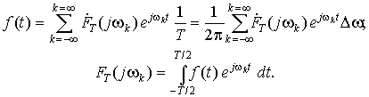 . В результате сумма в выражении для f(t) перейдет в интеграл. Заменяя обозначение FT(jwk) на F(jw), окончательно получим для спектрального представления непериодического сигнала: