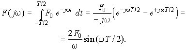 Определим спектр одиночного прямоугольного сигнала длительностью T (рис. 11.5, а). Поскольку f(t) отлична от нуля лишь в интервале времени –T/2 < t < T/2, пределы интегрирования в интеграле для спектральной плотности можно принять ограниченными: