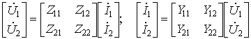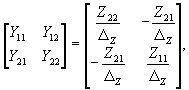 где DZ = Z11Z22 – Z12Z21 — определитель матрицы Z. Справедливы и обратные соотношения, выражающие элементы матрицы Z через Y-параметры.