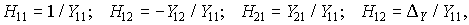 где DY = Y11Y22 – Y12Y21.