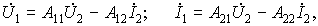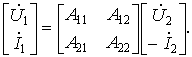 При рассмотрении четырехполюсника как звена цепи передачи сигналов используют еще одну форму уравнений через A-параметры: