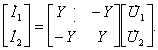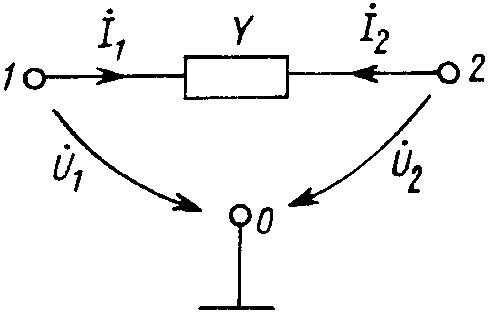 Например, описание двухполюсника с помощью неопределенной матрицы проводимостей Y (рис. 12.15) выражается двумя уравнениями: