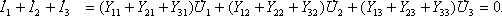 Эти свойства позволяют записать неопределенную матрицу проводимостей трехполюсника в форме: