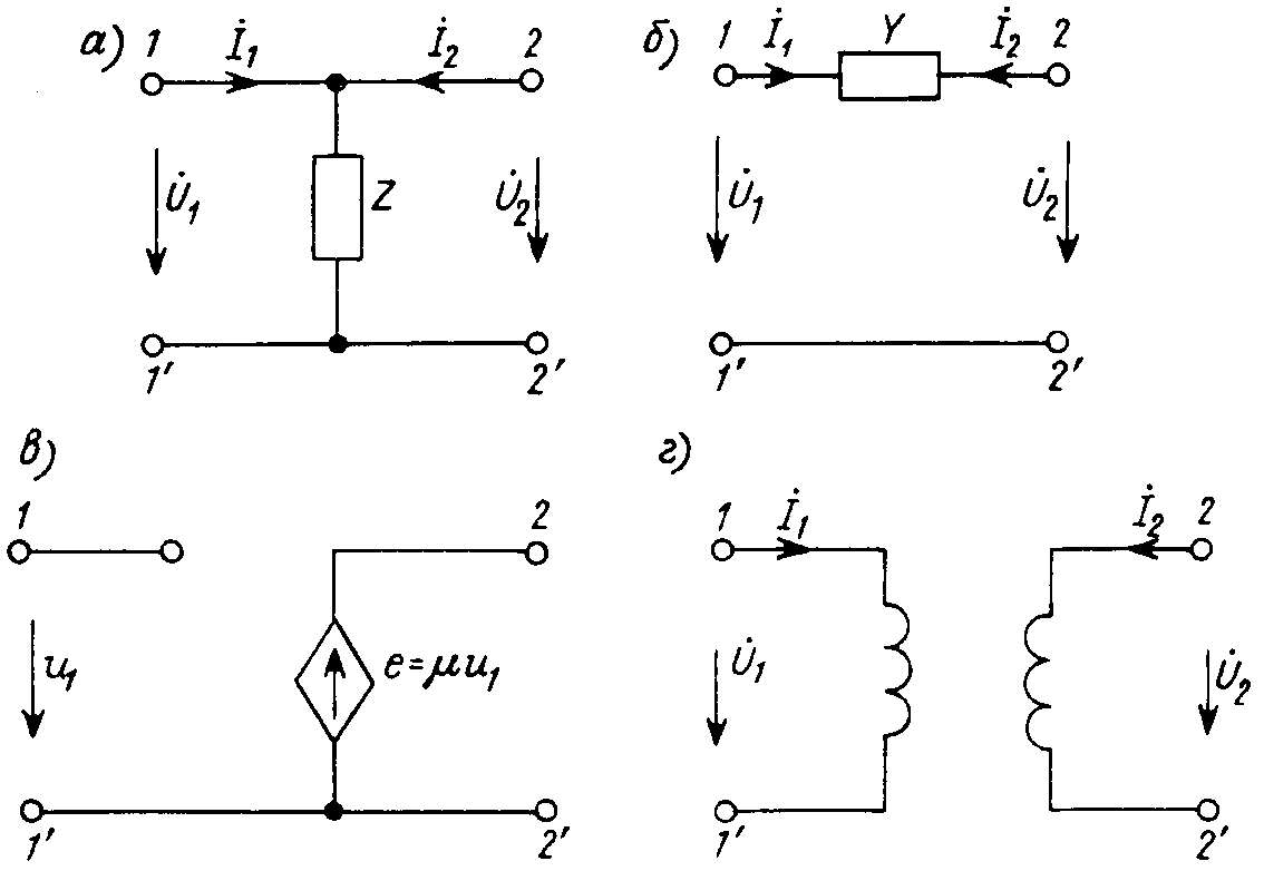 Другой простейший четырехполюсник (рис. 12.5, б) описывается вырожденной
