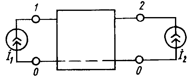 К входному 1 и выходному 2 зажимам подключены источники тока İ1 и İ2. Затем из составленной системы исключают напряжения внутренних узлов четырехполюсника, что приводит к Y-уравнениям. |