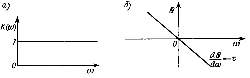 Таким образом, для передачи сигнала без искажения необходимо равенство единице амплитудно-частотной характеристики фильтра в полосе пропускания и линейная зависимость от частоты фазового сдвига q. Однако, как будет показано ниже, их строгое выполнение на практике невозможно.