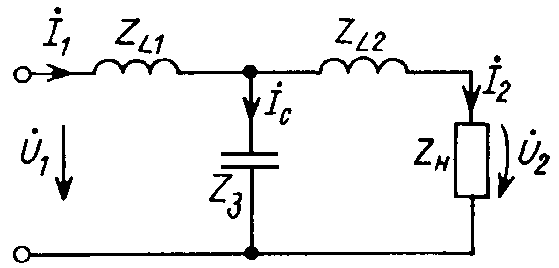 однозвенного фильтра с параметрами Z1 = Z3 = jwL/2; Z2 = 1/jwC, нагруженного на сопротивление
