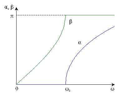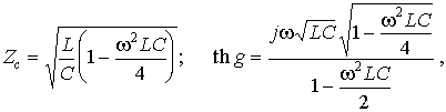Из этого выражения видно, что при w* < 1 или при w < wc < 2/ЦLC мера передачи является чисто мнимой величиной. Это неравенство определяет полосу пропускания фильтра, в которой затухание a = 0.