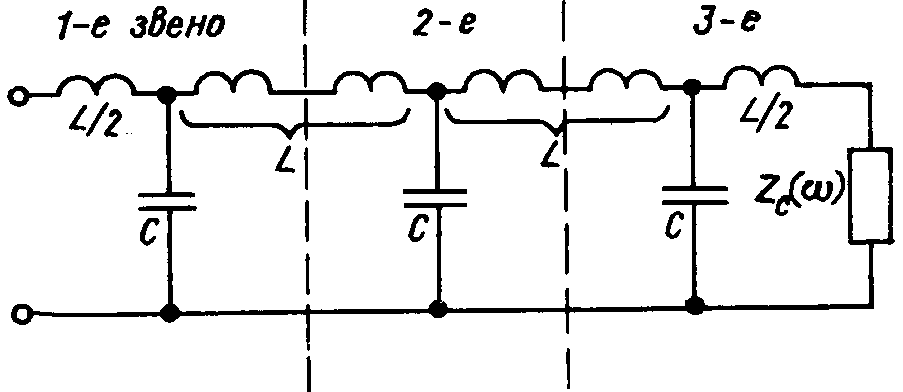 Характеристическое сопротивление, вещественное в полосе пропускания, уменьшается от значения Zc0 = ЦL/C при w = 0 до нуля на частоте среза wc. Это не позволяет обеспечить настройку фильтра в режим согласования во всей полосе пропускания: при нагрузке на постоянное сопротивление условие согласования можно выполнить лишь для одной фиксированной частоты.