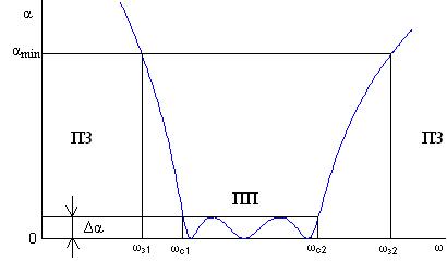 Обычно эти характеристики задаются в децибелах допустимая неравномерность коэффициента передачи в полосе пропускания характеризуется максимальным значением ослабления сигнала в полосе пропускания. Поскольку a = 20 lg U1/U2 = – 20 lg KU, то Da = – 20 lg (1 – DK). Аналогично, ослабление выходного сигнала в полосе задерживания не должно быть ниже amin = – 20 lg Kmax (рис. 13.11, б).