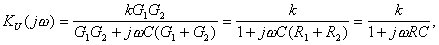 где R1, 2 = 1/G1; R1 + R2 = R. Параметры звена определяют аналогично путем приравнивания коэффициентов в сомножителях KU и H2.