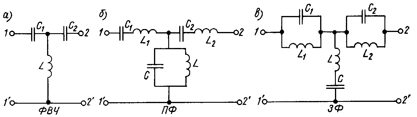 в последовательные LC-контуры. Результат такого преобразования НЧ-прототипа приводит к схеме звена заграждающего фильтра ЗФ рис. 13.16, в.