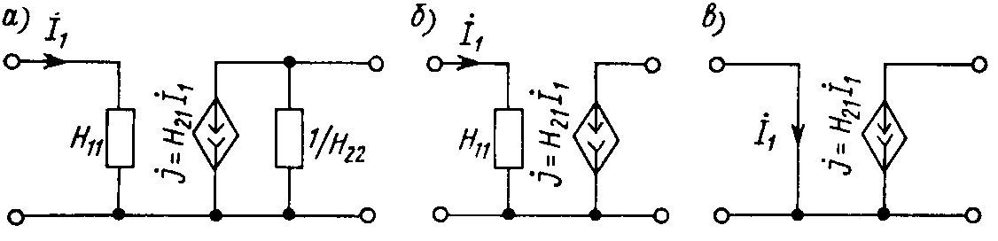 При пренебрежении малым параметром H12 все связи существенно упрощаются, и возможно отождествление отдельных параметров одногенераторной схемы с H-параметрами. Соответствующая схема замещения показана на рис. 14.5, а.