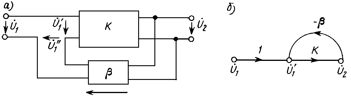справа налево! В рассматриваемой системе имеем, очевидно, последовательную обратную связь по напряжению. Так как напряжение обратной связи вычитается на входе усилителя из входного сигнала