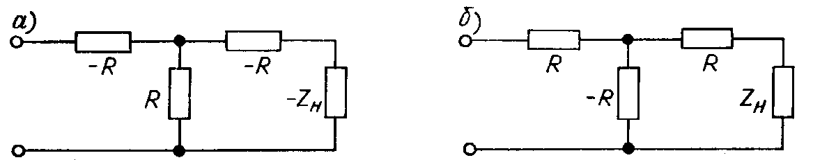 Следовательно, рассматриваемая цепь представляет собой инвертор сопротивления Zн ее входное сопротивление обратно пропорционально значению Zн. Для цепи (рис. 14.20, б) получим аналогично