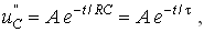 где A пока неопределенная константа; t = RC величина, имеющая размерность времени, характеризующая скорость протекания переходного процесса, так называемая постоянная времени.
