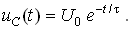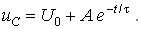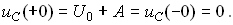Для определения значения A используем начальное условие значение напряжения uC(0) = U0, до которого конденсатор был заряжен к моменту замыкания ключа. При t = 0 имеем