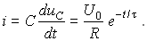 Для расчета тока при разряде и напряжения uC исходном уравнении следует положить u0(t) = 0, что приводит его к однородному уравнению: