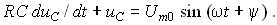 3. Включение RL-цепи к источнику синусоидального напряжения u0(t) = Um0 sin (wt + y). В этом случае общие уравнения переходного процесса сохраняются; для напряжения uC имеем уравнение