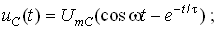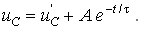 Для определения постоянной A используем начальное условие. Согласно закону коммутации, напряжение на конденсаторе в момент замыкания ключа остается непрерывным. Поэтому если в исходном состоянии до замыкания ключа конденсатор не был заряжен (uC(– 0) = 0), то это же нулевое значение uC сохранит и непосредственно после замыкания. Из последнего выражения при t = 0 имеем
