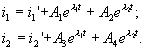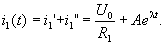 Таким образом, для тока i1 имеем уравнение первого порядка. Поскольку единственный корень характеристического уравнения теперь равен то общее решение полученного дифференциального уравнения имеет вид